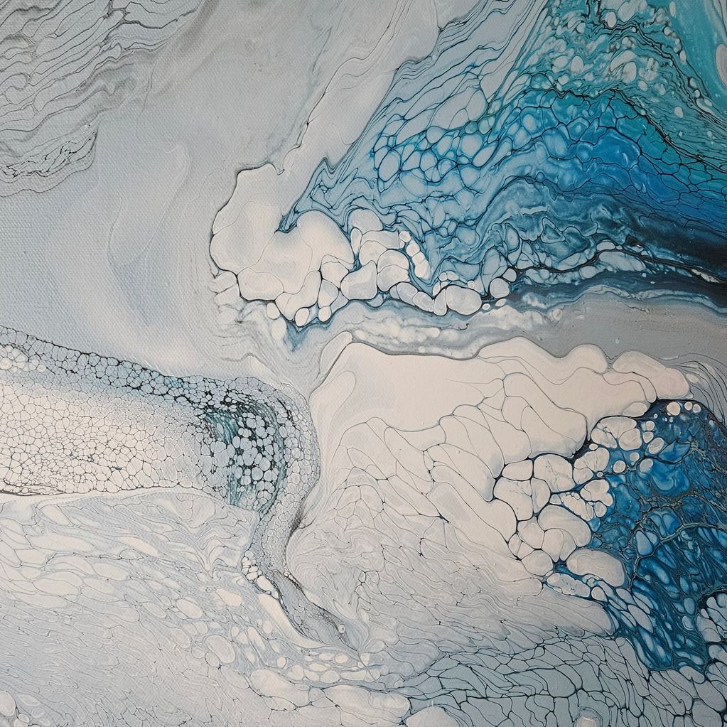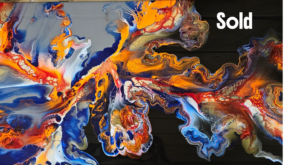 This paint is a 24 by 24 Swipe and pour off the canvas. With deep rich blues! Email me if interested.